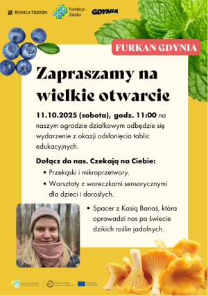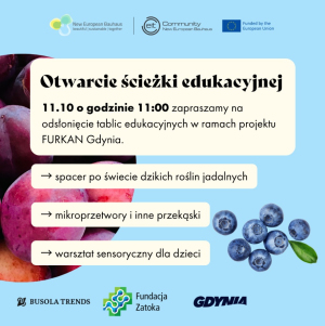 W dniu 11.10.2025 r. na terenie Rodzinnego Ogrodu Działkowego im. W. Sikorskiego w Gdyni nastąpiło otwarcie ścieżki edukacyjnej poświęconej zrównoważonej uprawie. Opracowana ścieżka edukacyjna była zwieńczeniem prowadzonych warsztatów w ramach projektu FURKAN Gdynia, przez Lidera fundację Busola Trends oraz Partnera Urząd Miasta Gdyni, we współpracy z Fundacją Zatoka.