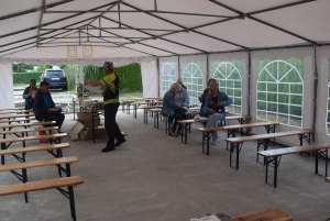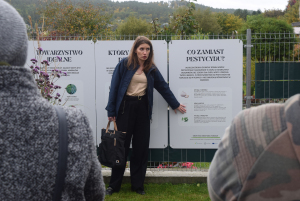 Pani Małgorzata uczestnikom imprezy przedstawiła główne cele projektu FURKAN. Dodatkowo dokonała interpretacji każdej z tablic edukacyjnych, które przedstawiają różne aspekty w produkcji roślinnej zmierzającej do uzyskania dobrej jakości, a przede wszystkim zdrowej żywości. Tablice przedstawiają porady ogrodnicze oraz praktyczne wskazówki oparte na katalogu dobrych praktyk ogrodniczych.