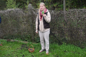 Po poczęstunku odbyła się druga cześć spotkania, która została poprowadzona przez p. Kasię Banaś - edukatorkę przyrodniczą do dzikich roślin jadalnych, która zabrała działkowców na spacer połączony z warsztatami edukacyjnymi poświęcony dzikim roślinom jadalnym. Na których słuchacze dowiedzieli się o smacznej jajecznicy z dodatkiem pokrzywy, o leczniczych właściwościach grzybów rosnących na drzewach boczniaków ostrygowatych, babki lancetowatej i wielu innych roślin, traktowanych jako chwasty na działce. W trakcie warsztatów p. Katarzyna przygotowała dla Działkowców warsztaty sensoryczne, gdzie działkowcy odkryli ukryte w woreczkach zapachy ziół oraz ich właściwości lecznicze.