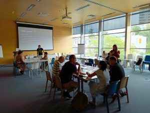 W pierwszej części imprezy p. Małgorzata Piskórz – badaczka prognostka i analityczka trendów wspierająca miasta i organizacje we wdrażaniu myślenia długoterminowego w procesach innowacyjnych oraz w tworzeniu strategii odpornych na przyszłość, dokonała otwarcia tablic edukacyjnych, wyeksponowanych przed wejściem na teren ogrodu. Tablice edukacyjne w ilości sześciu sztuk opracowane zostały podczas warsztatów Ambasadorów wiedzy o bezpiecznej żywności, nowoczesnych i zrównoważonych praktykach w produkcji, przetwórstwie i dystrybucji żywności roślinnej w regionie Gdyni