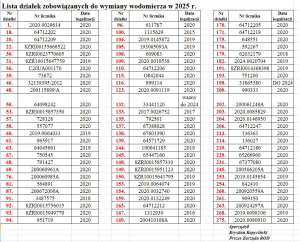 Przypominam Państwu o wcześniejszym dokonaniu wymiany wodomierzy dla tych wodomierzy, którym upłynął 5 letni termin legalizacji. Lista działek, które zobowiązanie są do wymiany wodomierza w 2025 r. została udostępniona.