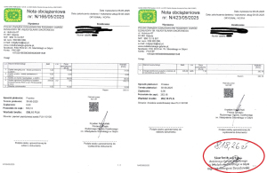 Uprzejmie informuję, że w dniu 28 listopada br. zostały przekazane dwie noty na podane przez Państwa adresy e-mail obejmujące zużycie wody oraz energii elektrycznej w roku bieżącym. Zatem proszę o sprawdzenie przesłanych not. Noty należy zsumować i opłacić jedną kwotą. Termin zapłaty określony został do dnia 31.12.2025 r.