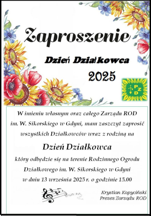 Zapraszam serdecznie wszystkich Działkowców oraz Dzieci.