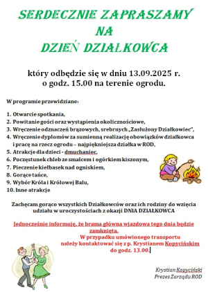 Już dziś zapraszam wszystkich Działkowców oraz dzieci do udziału w wydarzeniu.